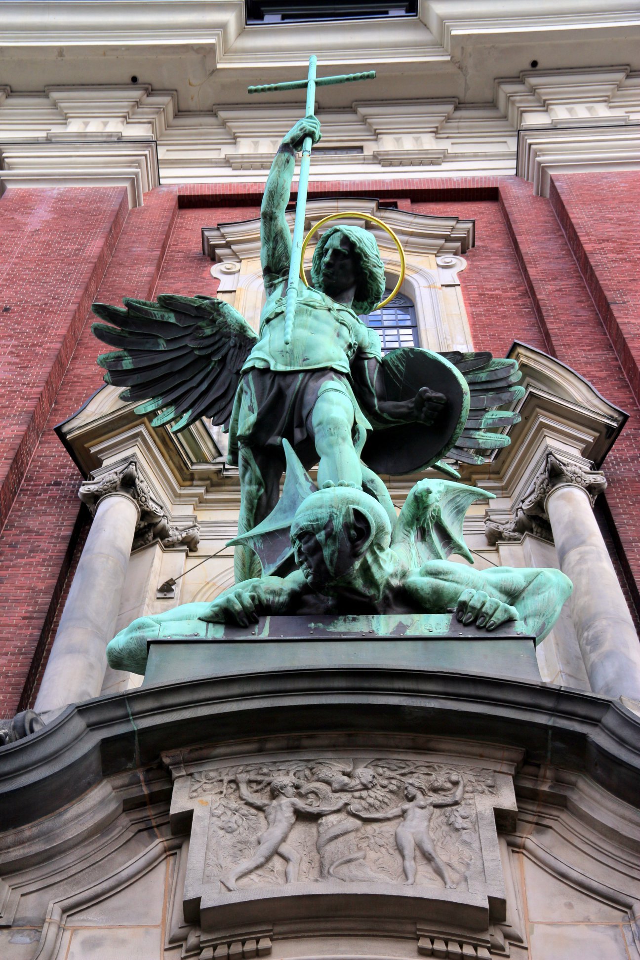 Já na área externa da igreja, há esculturas belíssimas e importantes. A estátua em bronze na entrada principal da Igreja de São Miguel representa o arcanjo e sua vitória no confronto com o diabo. Já na lateral, está a mais importante: a imagem de Martim Lutero. Além de ter sido uma das figuras centrais da Reforma Protestante, também foi professor de teologia. Seus estudos o levaram a escrever as 95 teses que desafiaram os ensinamentos da igreja católica especialmente quanto à natureza da penitência, à autoridade do Papa e da utilidade das indulgências.