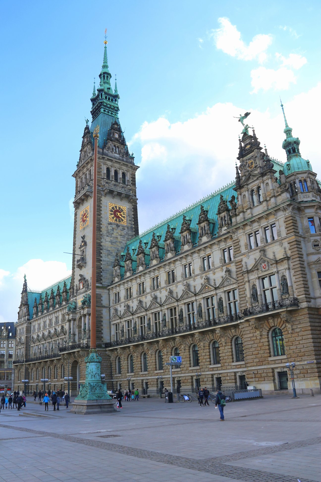 Feita essa etapa cultural, histórica e religiosa do passeio, é legal também conhecer a prefeitura, que fora construída entre 1886 e 1897, a imensa estrutura em estilo neorrenascentista é o símbolo da cidade. Essa é a quinta prefeitura da história de Hamburgo, sendo que as demais foram arrasadas em guerra e incêndios.