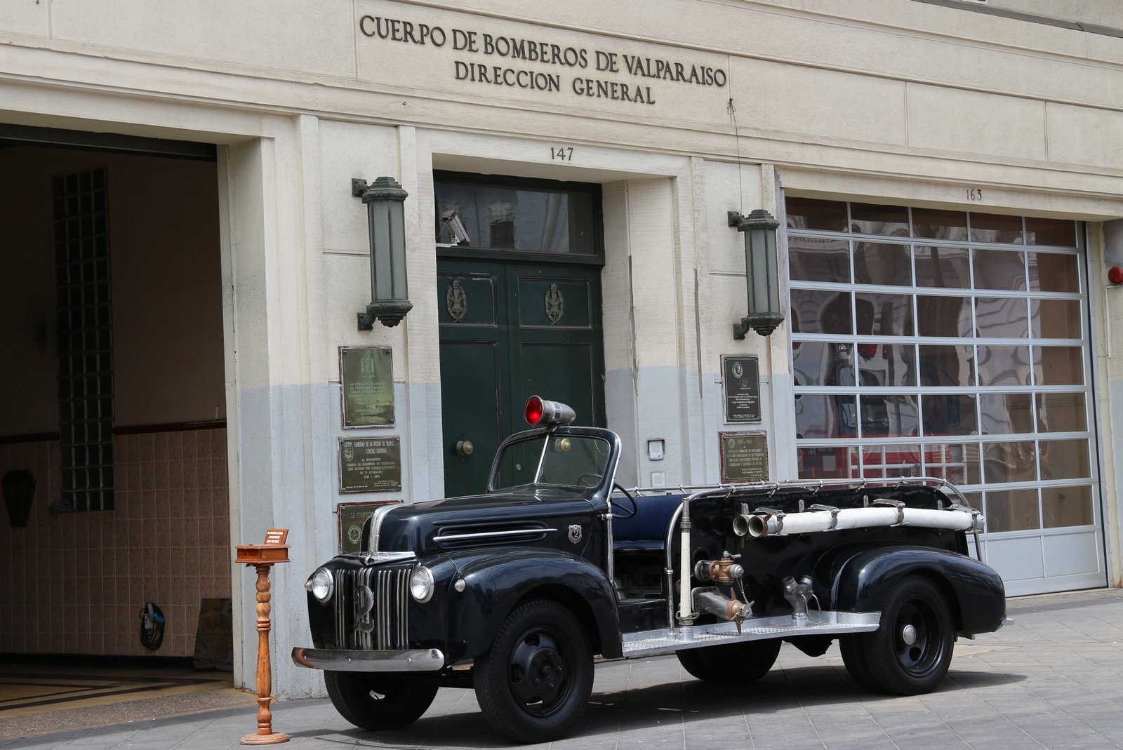 Outro prédio localizado no entorno da Plaza Sotomayor e que chama a atenção é o do Cuerpo de Bomberos de Valparaíso, dito por alguns como o mais antigo do Chile, sendo esse fundado em 1851. No período da viagem, estava exposto em frente ao local um dos carros utilizados nos tempos antigos pelos bombeiros da cidade.