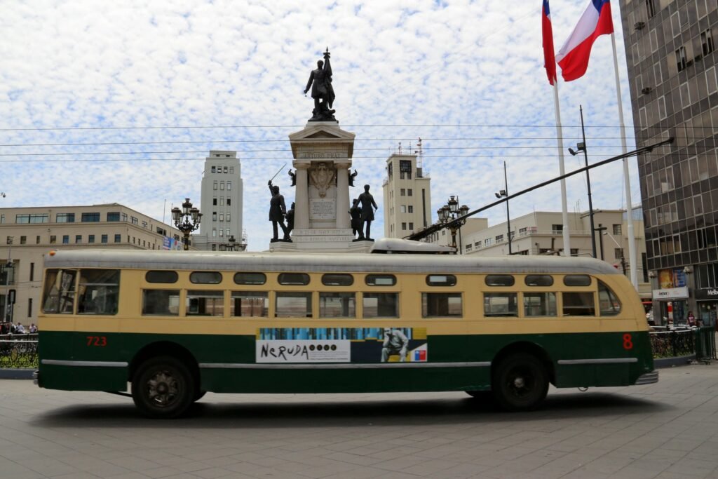 Um tipo de transporte chama a atenção de quem circula por Valparaíso. Conhecidos popularmente como trólebus, esses ônibus possuem a particularidade de serem elétricos e alimentados por cabos superiores.